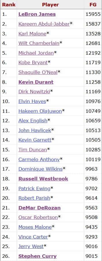据统计,库里生涯命中数超越杰里·韦斯特,上升至NBA历史第25位。